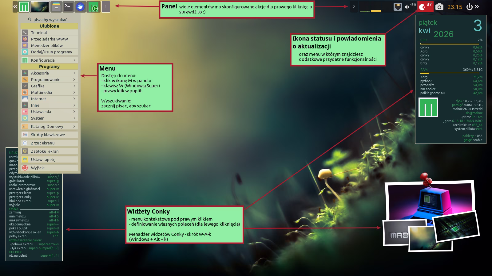 - Mabox 26.03 – Conky manager, narzędzie do zarządzania zadaniamiMarcowe wydanie Maboxa 26.03 przynosi udoskonalenia w obsłudze Conky, nowe narzędzie do zarządzania listami zadań oraz łatwiejszy podgląd i edycję skrótów klawiszowych.