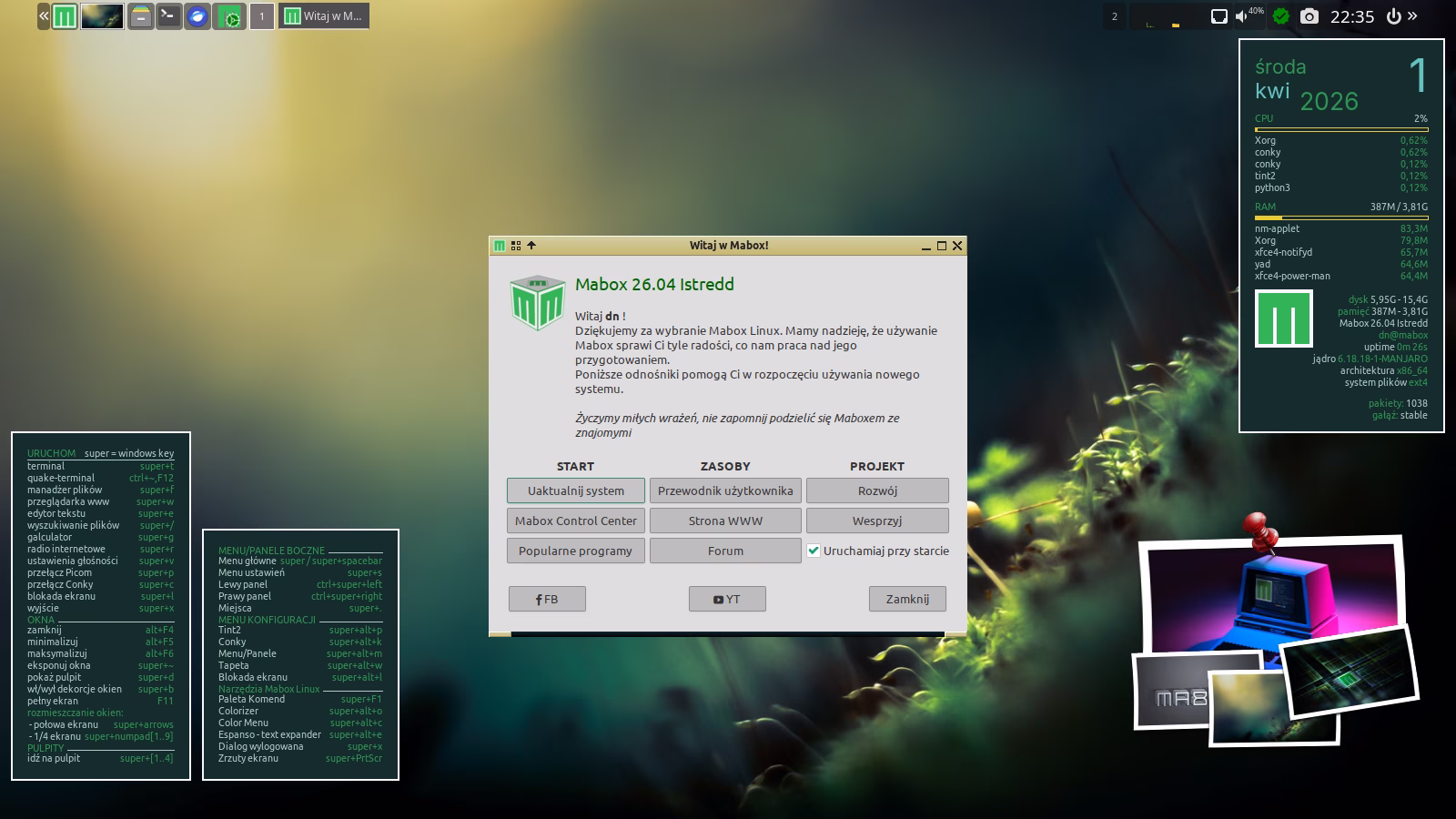 Przy pierwszym uruchomieniu pojawi się ekran powitalny, który prezentuje nam kilka linków oraz pozwala wykonać kilka zadań, jak: